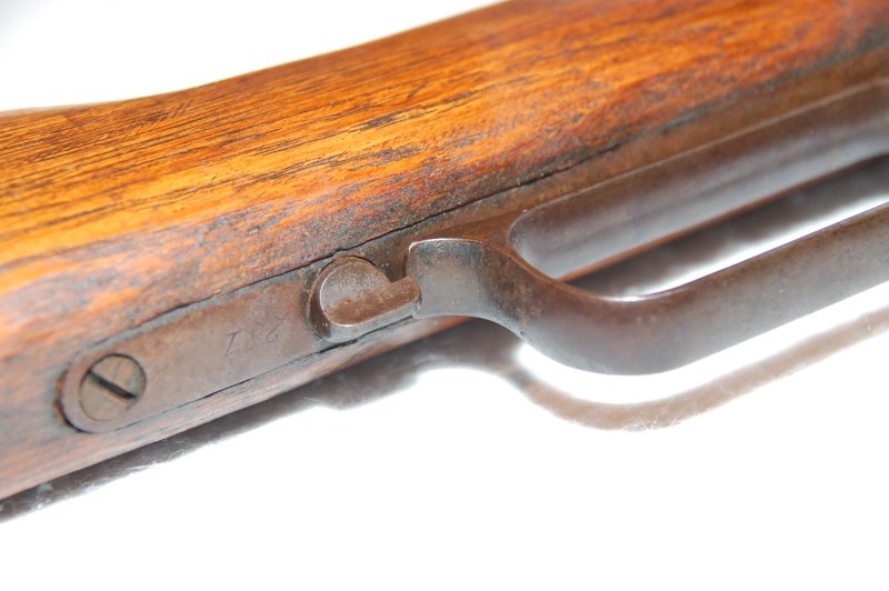 Note the poorly replaced tang screw and the interesting file marks on both the stock and tang, leading me to conclude the stock is not original. As the rifle has always been in the family, it's a shame we don't know who did the work, or what the story was. Despite a relative lack of finishing, the stock is very, very well done, and fits excellently. A testimony to the wood-working prowess of someone in my family. It is also interesting to see they apparently shared my loathing for sanding and finishing.