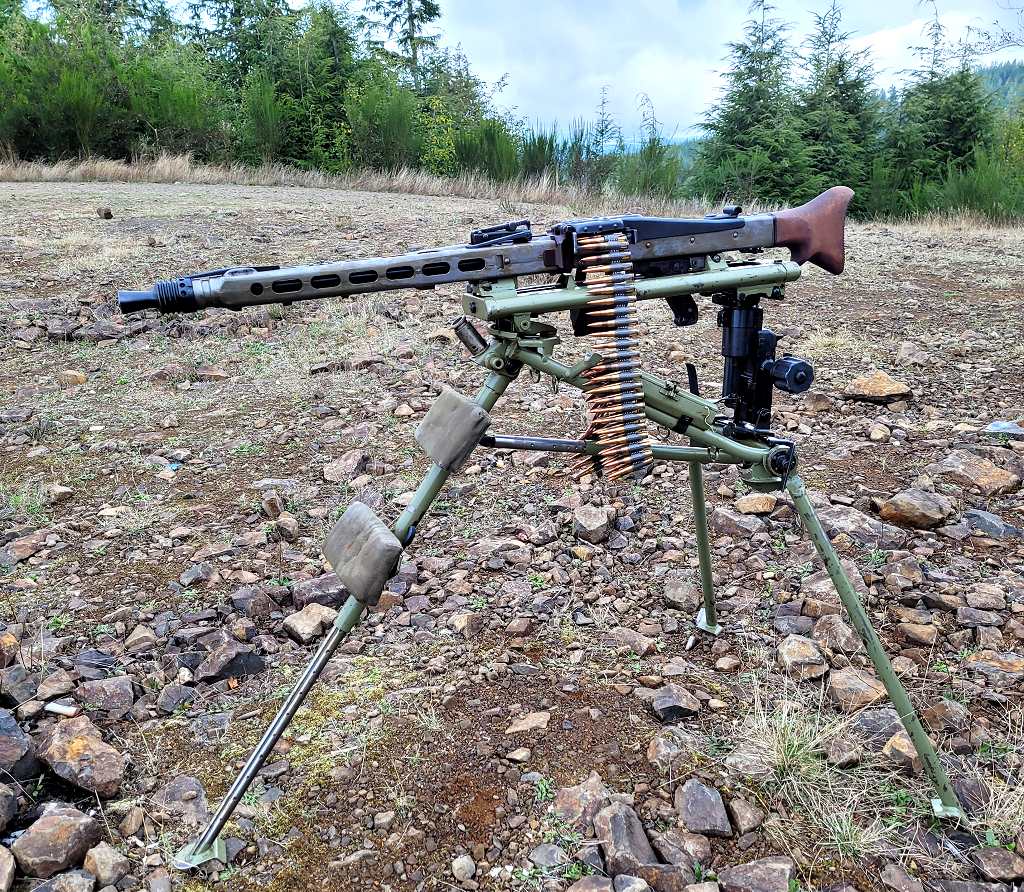 This is a semi-auto version of the legendary WW2 German machine gun. "Hitler's Buzz Saw". It is chambered in the original 7.92mm x 57 (aka 8mm Mauser) cartridge, however, I do have the post-war 7.62x51 NATO conversion parts as well, which is good, because it is HUNGRY for ammo, even in semi-automatic form. This is another example of something I have to own in semi-auto because my "enlightened" state doesn't allow Full Auto. Which is OK here in this case as it didn't cost a TENTH of what the original full auto pieces are currently selling for, and with the current scarcity, and corresponding high prices of ammo during this damned pandemic, I could never afford to shoot the thing even if I could afford a transferable example.