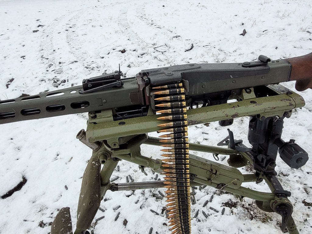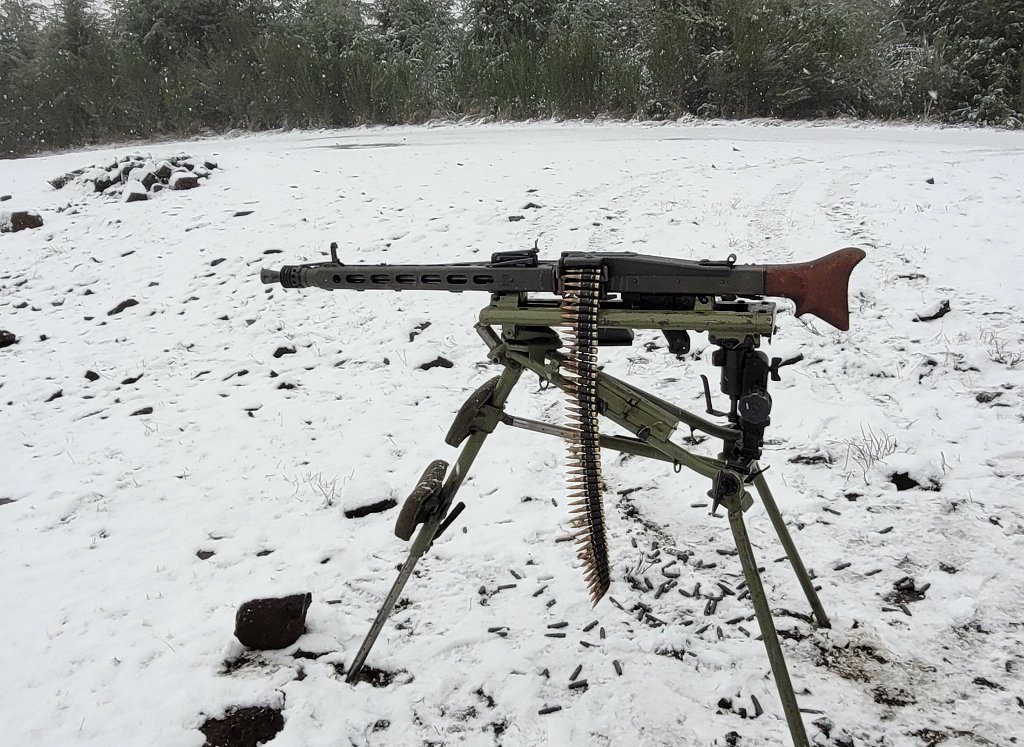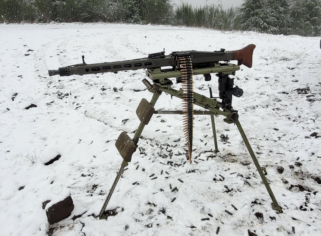On this trip, I swapped in the MG-3 feed tray, feed cover, and 7.62x51 NATO barrel. Then the darned weather went all Stalingrad on me. All the better.